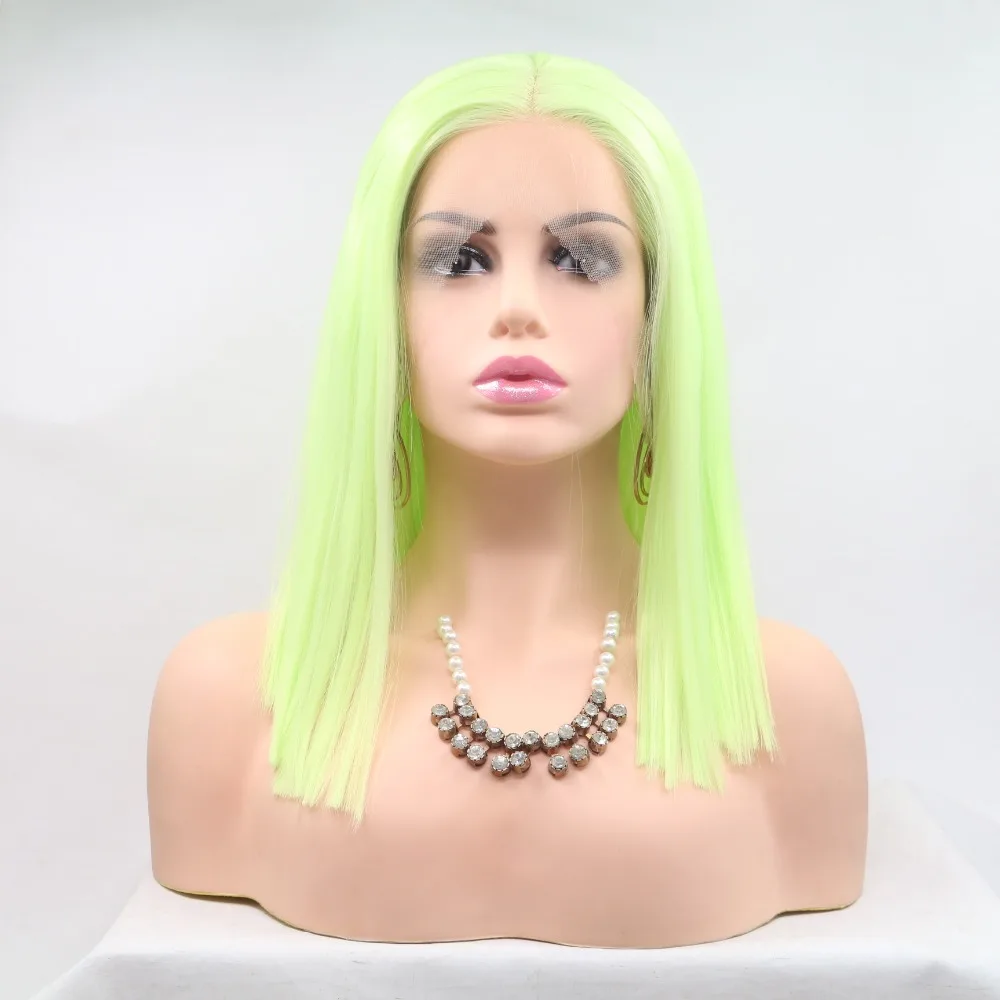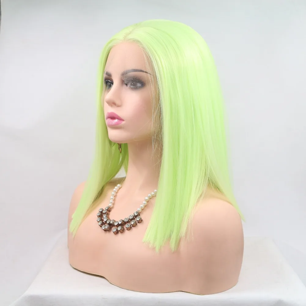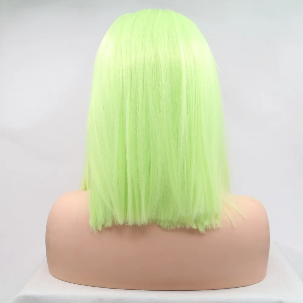 BEST Fantasy Beauty Lace Front Wigs 12" Short Bob Light Green Wig Straight Green Color Heat Resistant Sy