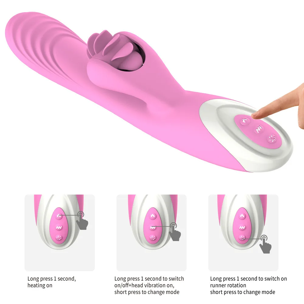 G Spot Heating Oral Dildo Vibrator Sex Tongue Licking Clitoris Stimulator Silicone Adult Sex Toys f