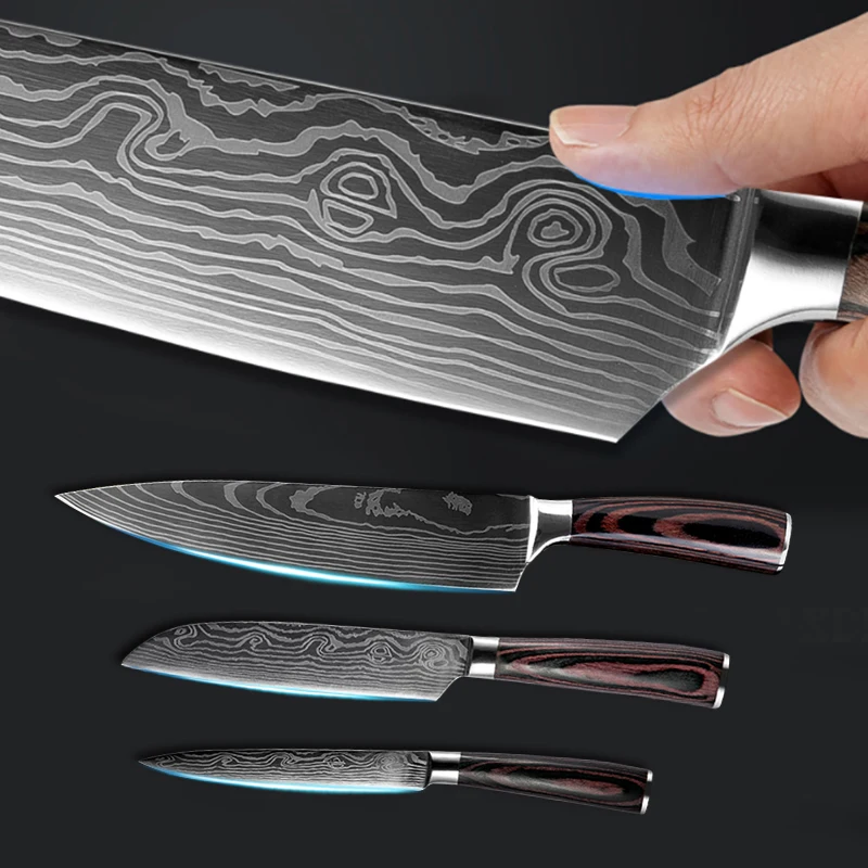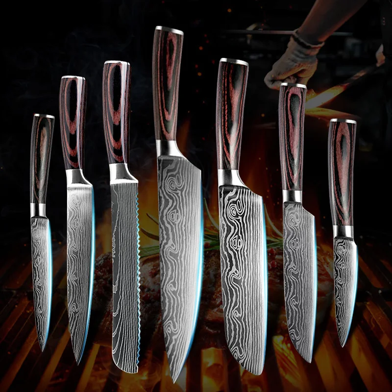 Best Quality 7PCS/Kit High Quality Kitchen Knives Set 8" 9" Utility Chef Knife Laser Damascus Steel Santoku Shar