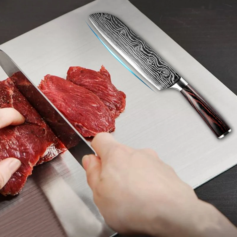7PCS/Kit High Quality Kitchen Knives Set 8" 9" Utility Chef Knife Laser Damascus Steel Santoku Shar