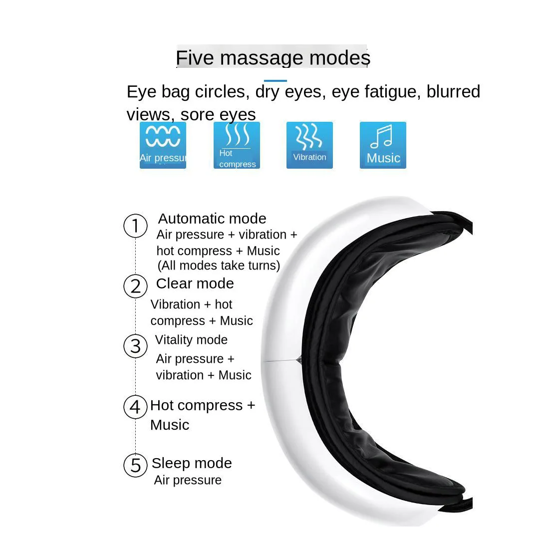 Vibration Heat Compression Eye Massager Music Bluetooth Relaxation Fatigue Relief Nursing Eye Care