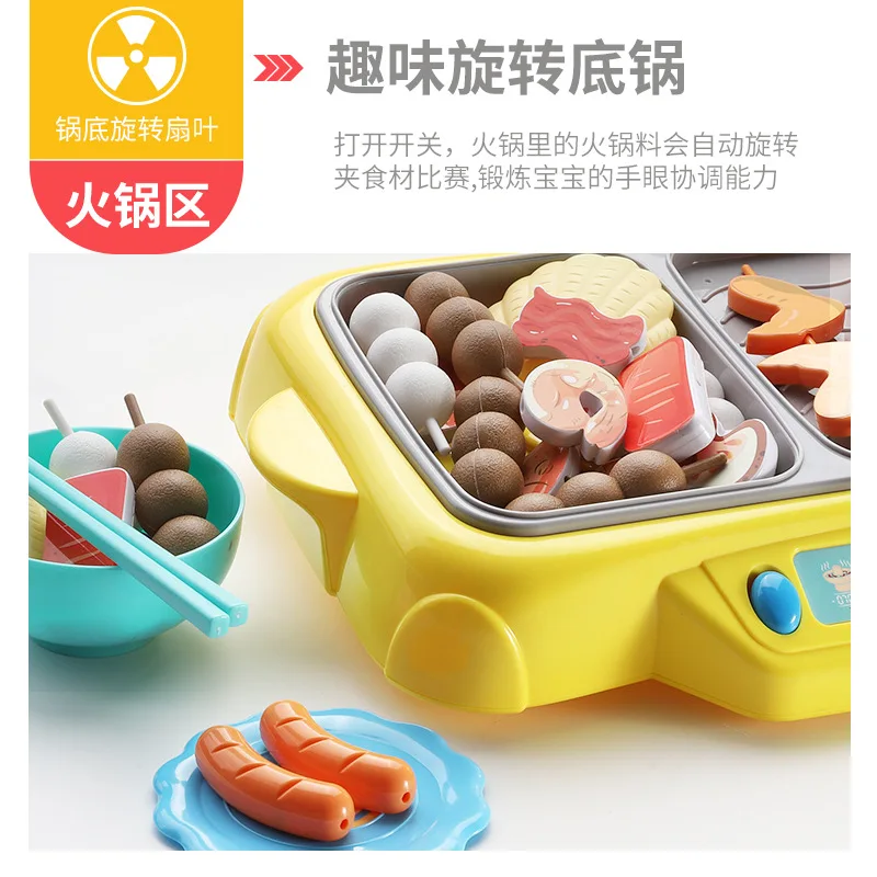 HOT SALE Children Play House Hot Pot Barbecue Grills Toy Model Spray Kitchen Cooking Kebabs Small Appliances