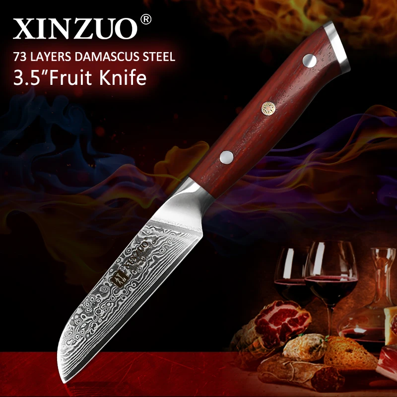 XINZUO Brand 3.5'' inch Paring Kitchen Knife Handmade Damascus Steel Rosewood Handle Japanese Carve