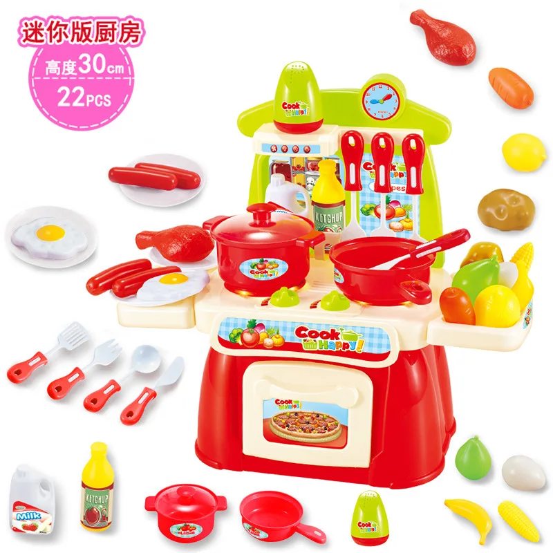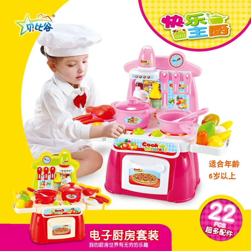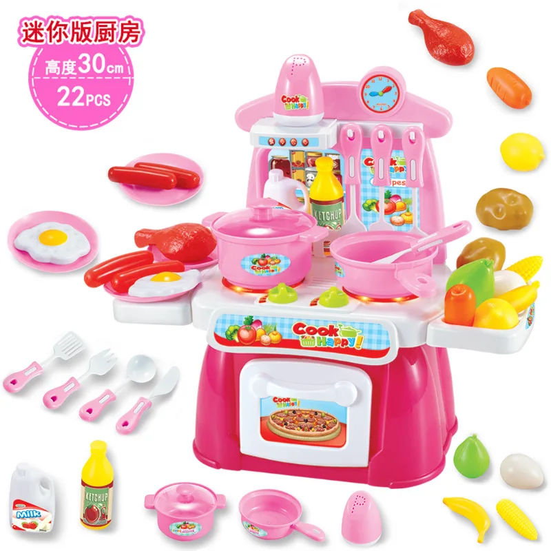 ORIGINAL Children Play House Toys Boys And Girls Children Light Music Kitchenware Tableware Model Kitchen Se