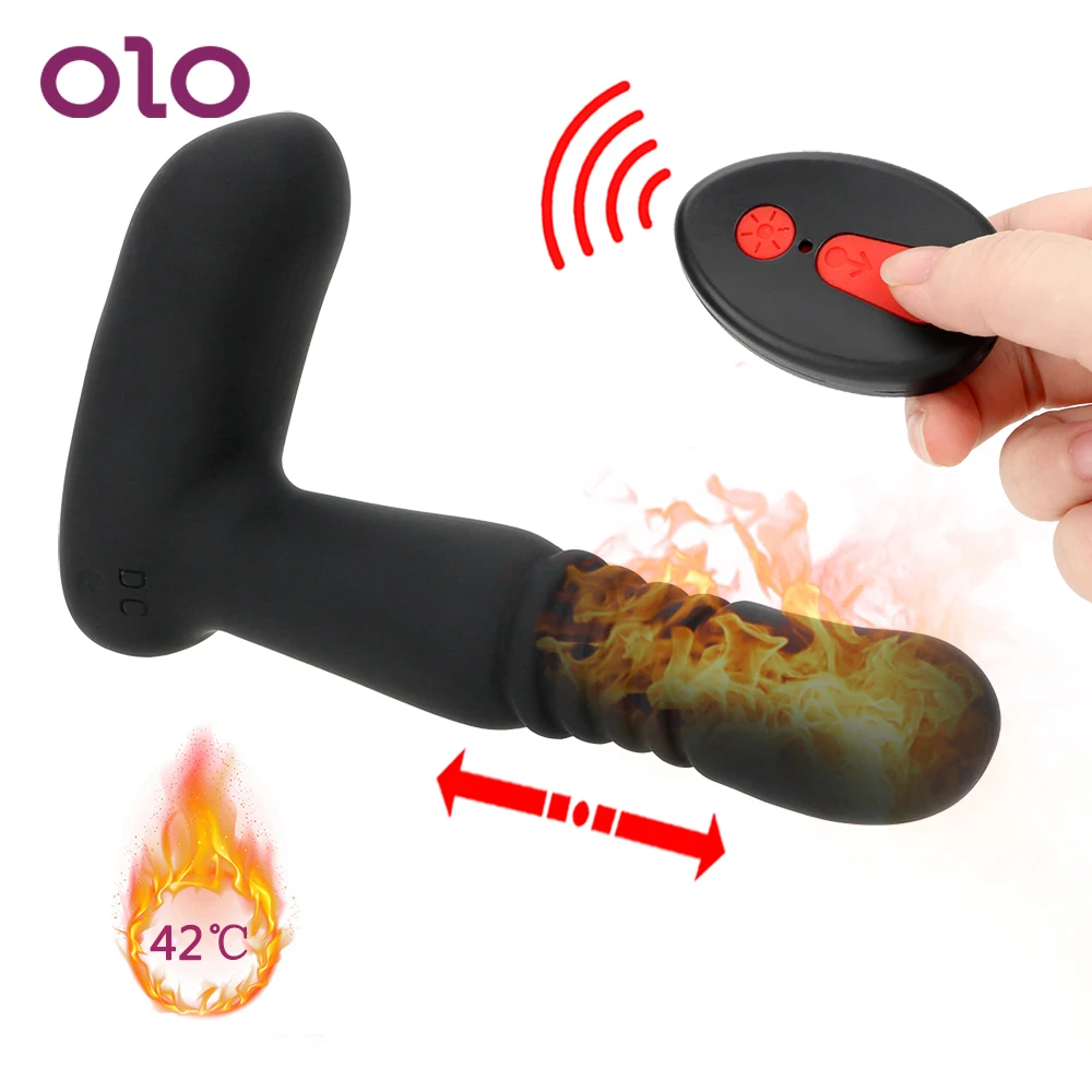 OLO Sex toy for Men Heating Rod Telescopic Dildo Anal Vibrators Prostate Massager 6 Speed Remote Co