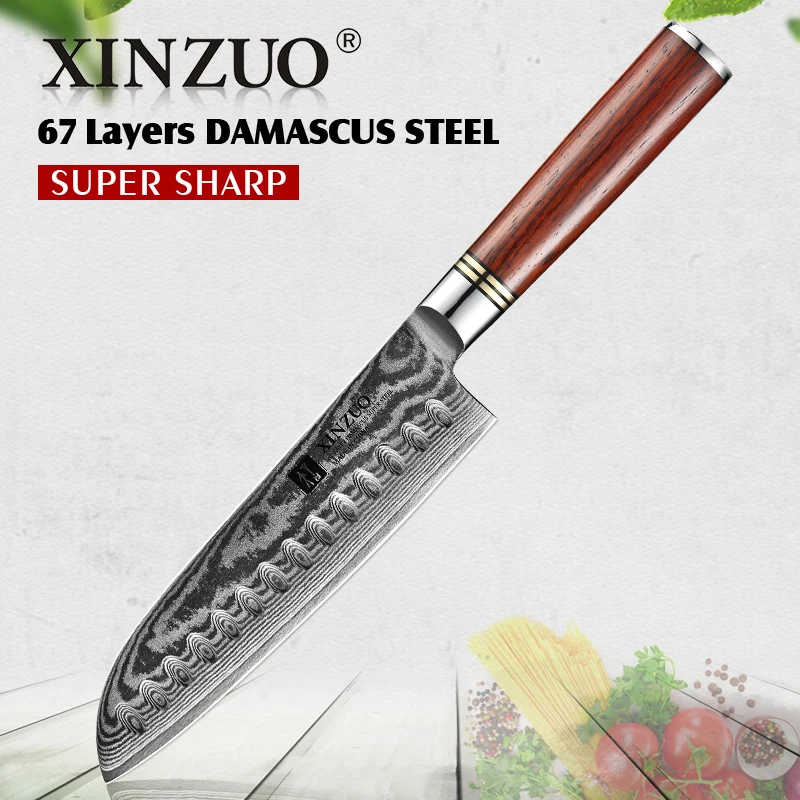 REVIEW TOP SELLER XINZUO 7'' inches Japanese Style Chef's Knife vg10 Damascus Steel Professional Kitchen Santoku Kniv