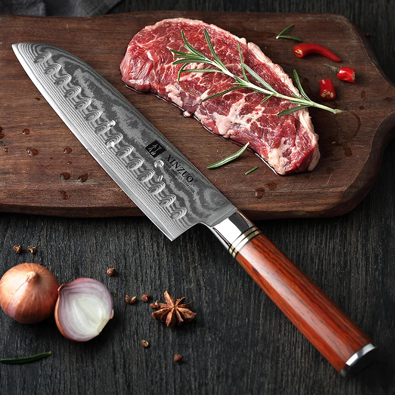 XINZUO 7'' inches Japanese Style Chef's Knife vg10 Damascus Steel Professional Kitchen Santoku Kniv