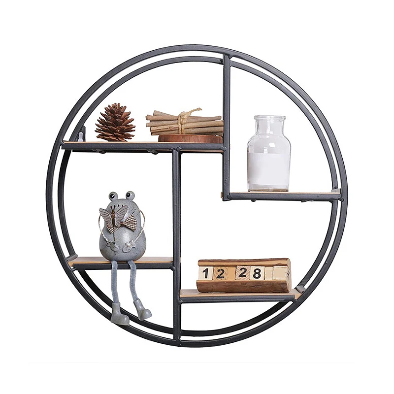 Wall Mounted Iron Shelf Round Floating Shelf Wall Storage Holder and Rack Shelf for Pantry Living R